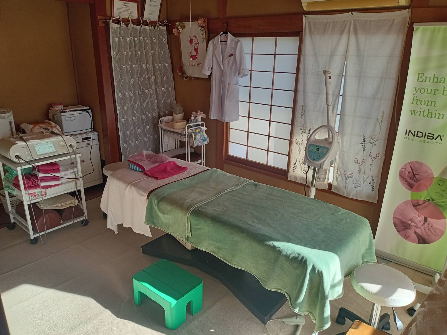 まるでおばあちゃん家に帰ってきたような古民家サロン。ライフステージで変化する悩みや体の不調に寄り添い続けて10年のプライベートサロンです。手足の冷え、脚のむくみ、首肩コリ、体の重だるさなど体の不調にはインディバがオススメ。心地よく眠りにつきそうになるマイルドな温かさが体を芯から温め、代謝を促進、神経や筋肉の緊張をほぐして疲労物質をデトックスします。体質改善、更年期のホルモンバランスや睡眠トラブルにも◎