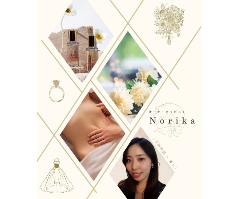 看護師として医療現場に携わり、専門的な知識と経験を積んできたオーナーNORIKAさん。もともと人と話すことが好きで、患者さん一人ひとりと向き合う中で「心や体の悩みを深める前にケアしたい」という思いが強くなり、看護師兼セラピストの道を選ばれました。 医療で培った確かな知識とセラピストとしての技術を組み合わせ、『予防美容』の観点から健康と美をサポート。疲れを癒したい方、悩みを改善したい方、安心してお話ししたい方まで、幅広くしっかり受け入れてくれださいます。